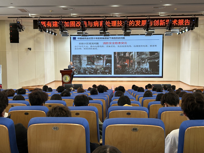 下午2點(diǎn),吳如軍董事長(zhǎng)分別從“建筑業(yè)發(fā)展?fàn)顩r、建筑物震害特征分析及規(guī)范缺陷、建筑加固改造糾傾托換新技術(shù)、加固改造工程應(yīng)注意的關(guān)鍵點(diǎn)“等幾個(gè)方面進(jìn)行詳細(xì)地分析與講解,讓參加講座的師生們可以更直觀了解建筑加固改造行業(yè)。