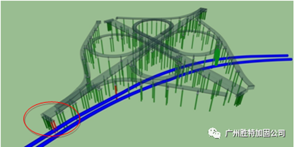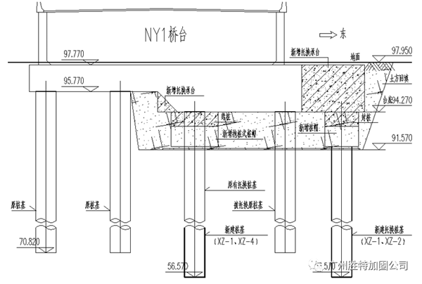 2、破除新樁基樁頭,新作抱樁式樁帽及新增樁帽,注意樁基聲測管和注漿管。