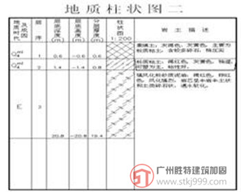 場地地基由人工填土(Qml)、第四系沖淤積層(Qal)、第四系殘積層(Qel)及古近系始新統(tǒng)華涌組(E2h)“紅層”碎屑巖組成,工程地質(zhì)綜合剖面共分10層,自上而下的巖性特征分述如下:第1層,人工填土(Qml),層厚0.50~3.0m,平均1.56m,土層由粉質(zhì)粘土及風化砂等回填而成,輕度壓實,均勻性差,承載力低。第2層,粉質(zhì)粘土,層厚0.60~10.30m,平均3.08m,土層由粉、粘粒組成,飽和,可塑~硬塑為主,局部軟塑,含沙粒,承載力不高。第3層,淤泥質(zhì)土,層厚0.90~12.10m,平均5.54m,土層呈灰黑色,手拈粘滑,飽和,流塑,局部夾沙粒層及腐植物,承載力極低,抗剪強度低,為不良地基。第4層,粉砂、細砂,層厚2.0~3.1m,平均2.74m,砂土層顆粒均勻,飽和,零星分布,中密為主,局部密實,含有粘性土及中粒砂,承載力低。第5層,粉質(zhì)粘土,層厚2.1~6.6m,平均4.14m,由粉、粘粒組成,飽和,可塑為主,局部軟塑或硬塑,局部含砂粒,承載力不高。第6層,中砂,層厚4.5~5.0m,平均4.75m,砂土層顆粒均勻,飽和,中密為主,局部稍密,含有較多粉細砂及粗粒砂,有一定承載力。第7層,殘積土,層厚1.0~9.1m,平均3.12m,按土性分為殘積粉質(zhì)粘土、殘積粉砂、細砂及殘積中砂、粗砂。局部分布,有一定的承載力。第8層,全風化巖帶,層厚0.60~10.5m,平均3.66m,巖性為泥質(zhì)粉砂巖、粉砂巖、細砂巖及中砂巖,局部分布,承載力稍高。第9層,強風化巖帶,層厚2.0~27.8m,平均15.95m,巖性為泥質(zhì)粉砂巖、粉砂巖、細砂巖、中砂巖及粗砂巖,層位穩(wěn)定,承載力較高,均可作預制樁基礎(chǔ)持力層。第10層,中風化巖,層厚在6.1~17.8m,平均12.85m,巖性為泥質(zhì)粉砂巖、粉砂巖及細砂巖,承載力高。