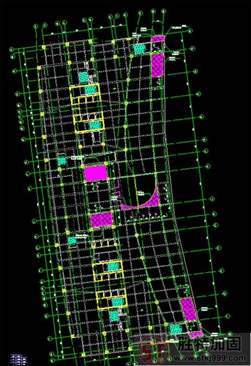 1)裙樓二層為新增加層,三~五層梁、柱的局部加大截面,新增部份梁、柱、樓梯及外沿飄板;
