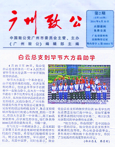 4月15日至19日,中國致公黨廣州市白云總支支部委員一行8人到貴州省畢節(jié)市大方縣第一中學開展扶貧助學活動。