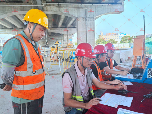 頂升工作開始,我司各崗位工作人員對(duì)現(xiàn)場設(shè)備儀器均進(jìn)行檢查及調(diào)試。在現(xiàn)場管理人員、技術(shù)人員、施工人員的共同努力下,《芳村至白云機(jī)場城際鐵路人和站至人機(jī)盾構(gòu)井區(qū)間下穿花莞高速高架橋頂升托換工程》順利完成頂升。
