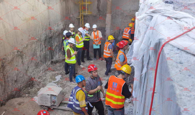 工程概況:芳村至白云機(jī)場城際鐵路人和站至人機(jī)盾構(gòu)井區(qū)間下穿花莞高速高架橋,在隧道通過前需要對(duì)侵入隧道的花莞高速高架橋樁基進(jìn)行梁式主動(dòng)托換。我司于2024年8月20日正式開工,截止2024年10月9日,歷時(shí)50天,全部完成兩處橋墩樁基的托換結(jié)構(gòu)及主動(dòng)托換頂升施工,創(chuàng)隧道下穿高架橋樁基托換工程最快工期記錄。