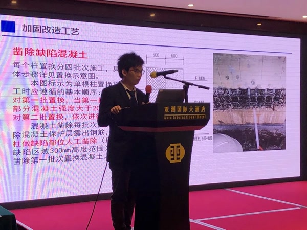 工程管理中心何茂副總經(jīng)理做《大型建筑群砼強(qiáng)度嚴(yán)重不足的多種加固工藝工程實(shí)踐》分享匯報(bào)