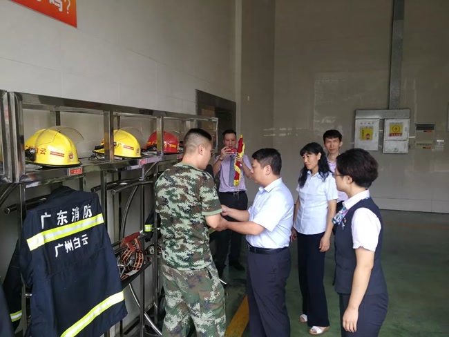 在中國人民解放軍建軍91周年紀(jì)念日即將來臨之際,7月24日上午,中國農(nóng)業(yè)銀行流花支行紀(jì)委書記張劍川先生、沙鳳支行行長吳瑩女士、客戶經(jīng)理許志東先生與我司黨支部書記、工會主席唐野先生,副總經(jīng)理唐軍先生、唐穎女士帶領(lǐng)公司黨員、部分在司員工組成的擁軍慰問團冒著風(fēng)雨來到金沙洲消防中隊,給堅守在滅火救援備戰(zhàn)一線的消防官兵送上了誠摯的問候和“八一”建軍節(jié)的祝賀,并送去了慰問品和部分消暑食品。