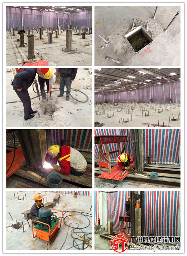廣州勝特加固公司采取了公司專利技術(shù)“群錨靜壓樁結(jié)構(gòu)”進(jìn)行廠房加固施工作業(yè),使得廠房倉庫在施工時(shí)不影響日常運(yùn)營使用。以下為施工現(xiàn)場照片:
