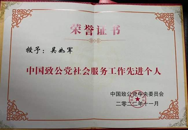 11月24日,在中國致公黨中央委員會召開中國致公黨社會服務(wù)工作會議上,吳如軍董事長獲“中國致公黨社會服務(wù)工作先進個人”榮譽證書。
