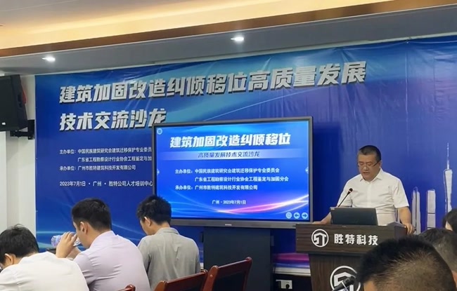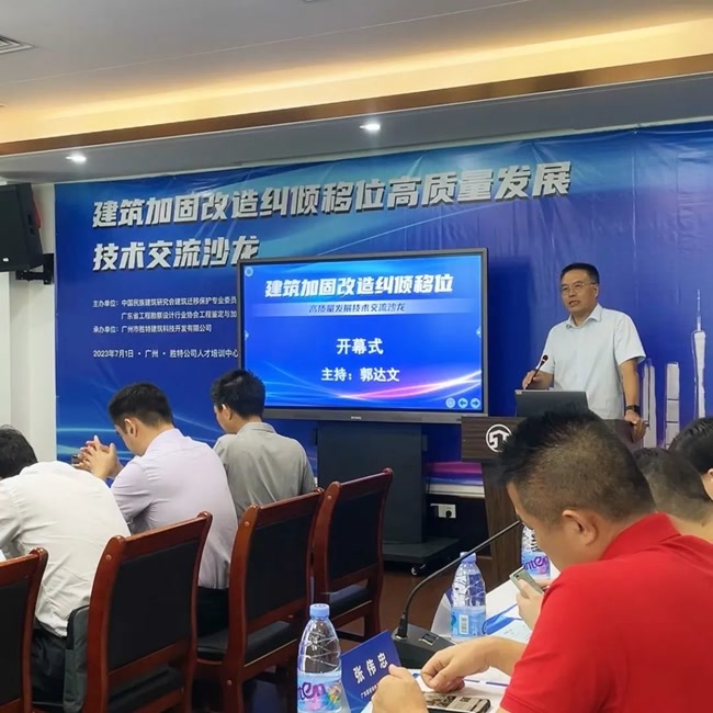 為推動建筑加固改造糾傾移位行業(yè)技術(shù)高質(zhì)量發(fā)展,由中國民族建筑研究會建筑遷移保護(hù)專業(yè)委員會、廣東省工程勘察設(shè)計(jì)行業(yè)協(xié)會工程鑒定與加固分會聯(lián)合主辦的“建筑加固改造糾傾移位高質(zhì)量發(fā)展技術(shù)交流沙龍”活動,于2023年7月1日(全天),在廣州市勝特建筑科技開發(fā)有限公司人才培訓(xùn)中心圓滿召開。本次會議邀請了全國建筑加固改造行業(yè)權(quán)威專家做精彩報(bào)告,分享行業(yè)最新工程實(shí)踐和研究成果,應(yīng)約參加線下沙龍的來自全國專家、學(xué)者近50人,線上觀看超過1000人。本次會議采用線下+線上直播相結(jié)合方式。