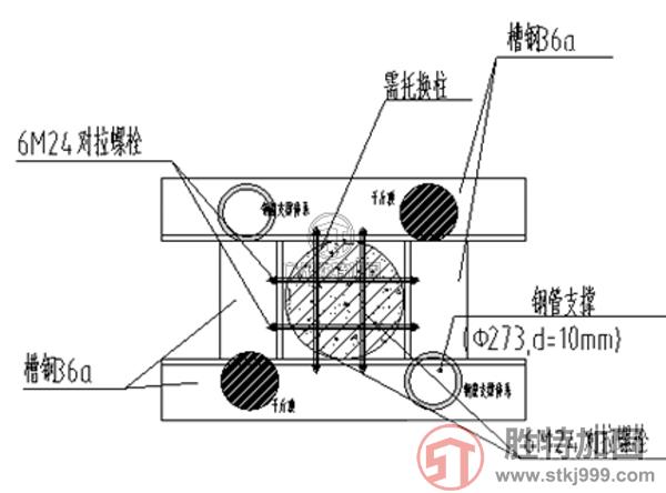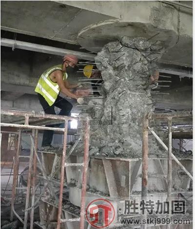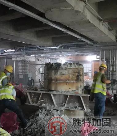 廣東亞洲國際大酒店七樓宴會(huì)廳托梁拔柱改造項(xiàng)目位于廣州市越秀區(qū)環(huán)市東路326-328號(hào),為地下3層,地上9層框架結(jié)構(gòu)體系。由于使用功能改變,需要拔除七樓宴會(huì)廳兩根框架柱(d=1300),形成跨度為23.4m的大開間。