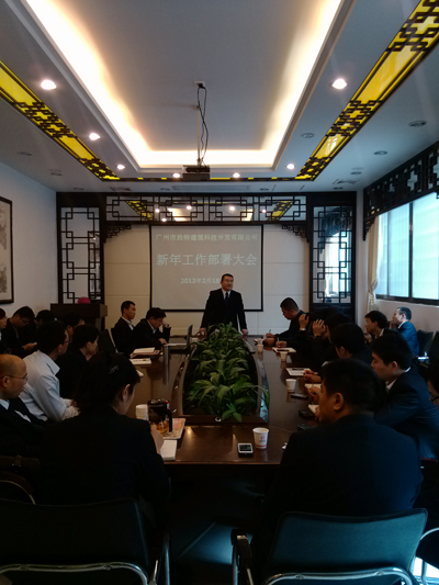 2013年2月18日農(nóng)歷初九,是蛇年春節(jié)長假后第一天上班,勝特加固公司全體員工歡聚一堂,互致問候,公司上下洋溢著輕松喜慶的氣氛。中午12:40,在公司會議1室召開了新年工作部署大會。會議由董事長吳如軍先生主持,與會人員有包括常務(wù)副總經(jīng)理先生、副總經(jīng)理唐軍先生、副總經(jīng)理唐穎女士及公司其他管理人員,共計30余人。