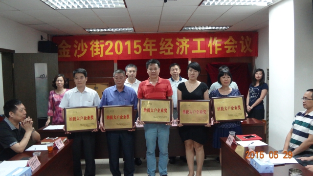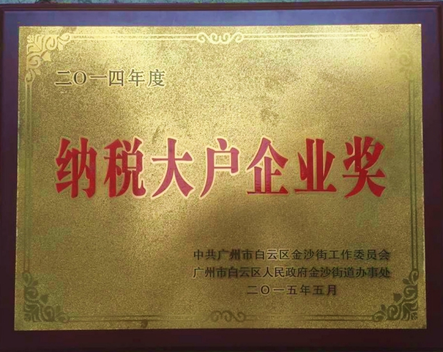 2015年5月29日,我司綜合研發(fā)中心總經理女士代表我司出席了金沙街2014年度經濟發(fā)展作出突出貢獻先進單位的表彰大會。我司作為金沙街納稅額入區(qū)庫前5名的企業(yè),被廣州市白云區(qū)金沙街工作委員會、金沙街道辦事處授予2014年度“納稅企業(yè)大戶”稱號,獲頒獎金1萬元,我公司已連續(xù)2年獲得此榮譽稱號。