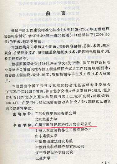 根據(jù)中國工程建設標準化協(xié)會《關于印發(fā)<2009年工程建設協(xié)會標準制訂、修訂計劃(第一批)>的通知》(建標協(xié)字[2009]55號)的要求,由我司等14家單位參編的《建(構)筑物托換技術規(guī)程》,經(jīng)審查,現(xiàn)批準發(fā)布,編號為CECS 295 :2011,自2011年9月1日起施行。