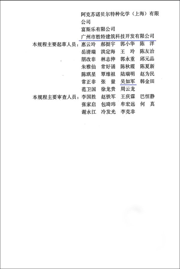 勝特加固改造公司作為參編單位、董事長吳如軍先生作為主要起草人,對該規(guī)范的出臺予以高度關(guān)注。勝特科技希望該規(guī)范能夠為混凝土結(jié)構(gòu)修復與防護工程設計和施工提供依據(jù),能夠指導設計和施工,規(guī)范特種行業(yè)行為,促進行業(yè)的發(fā)展,為構(gòu)建更和諧社會做出更大的貢獻。