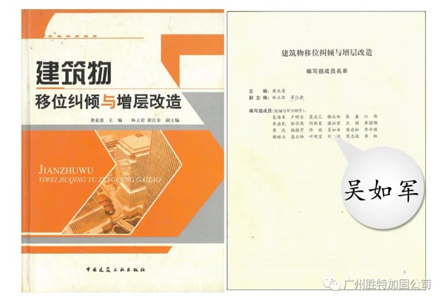 2006年開始編制工作,本書是配合《建筑物移位糾傾增層改造技術(shù)規(guī)范》貫徹執(zhí)行而編制的,可供結(jié)構(gòu)設(shè)計(jì)、加固、施工技術(shù)人員使用。吳如軍董事長(zhǎng)為該書參編人。