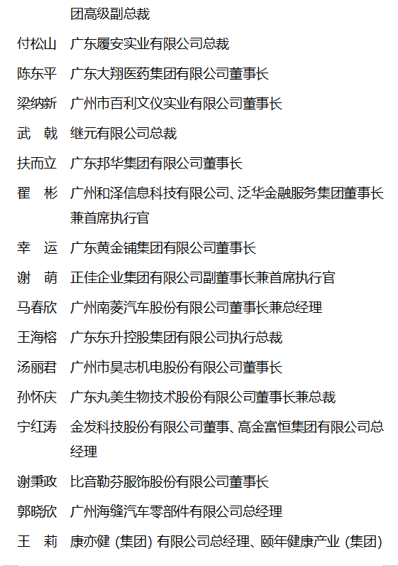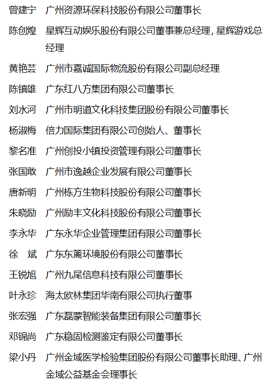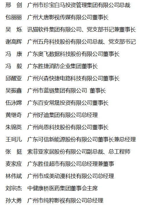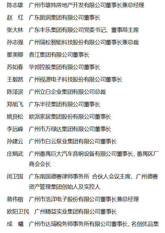 廣州市工商聯(lián)2022年度履職優(yōu)秀企業(yè)家名單