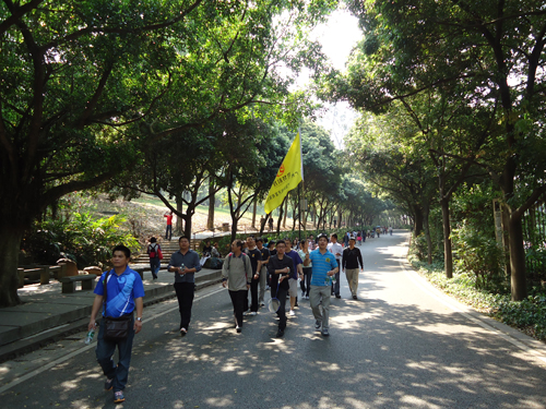 廣州白云山,是新“羊城八景”之首、國家4A級景區(qū)和國家重點風景名勝區(qū)。時值三月,春意盎然,正是踏青春游的好時節(jié),勝特人高舉著旗幟挺進白云山,一路上充滿歡聲笑語。在半山腰的小廣場上,可以看見大半個廣州,小蠻腰在遠處屹立,高樓大廈盡收眼底。