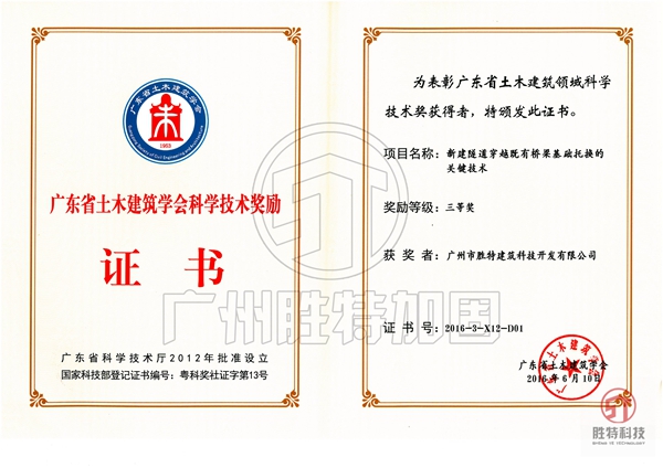 日剛發(fā)喜報(bào),今天又奏佳音。由我司和廣東省輕紡建筑設(shè)計(jì)院聯(lián)合申報(bào)項(xiàng)目“新建隧道穿越既有橋梁基礎(chǔ)托換的關(guān)鍵技術(shù)”榮獲2016年度廣東省土木建筑學(xué)會(huì)科學(xué)技術(shù)獎(jiǎng)。在已經(jīng)進(jìn)行的四屆評(píng)選中,我司連續(xù)獲得2項(xiàng)二等獎(jiǎng),2項(xiàng)三等獎(jiǎng)。
