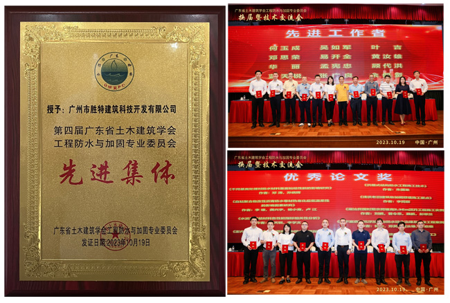 在表彰環(huán)節(jié)中,我司榮獲“第四屆廣東省土木建筑學(xué)會(huì)工程防水與加固專業(yè)委員會(huì)先進(jìn)集體”;吳如軍董事長榮獲“第四屆廣東省土木建筑學(xué)會(huì)工程防水與加固專業(yè)委員會(huì)先進(jìn)工作者”;張軍宇技術(shù)副總工榮獲“優(yōu)秀論文獎(jiǎng)”等榮譽(yù)稱號(hào)。