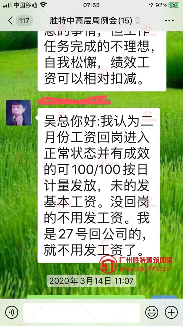 早日在中高層周例會上,就二月份工資發(fā)放征求意見會議上,部分員工自動提出“2月份自己對公司沒有做任何事情,故二月份工資不用發(fā)放”的請求,體現(xiàn)出勝特人同公司共同發(fā)展,榮辱與共的精神。。