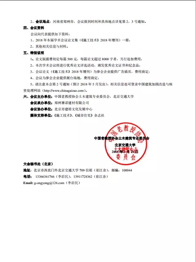 5、請注意本會第 2 號通知(預(yù)計(jì) 2018 年 5 月發(fā)出),相關(guān)信息也可登錄中國建筑加固改造與病害處理網(wǎng)站(http://www.chinagaizao.com)。