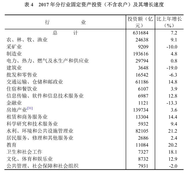 分行業(yè)來看,建筑業(yè)投資3648億元,比上年減少19.0%。房地產(chǎn)業(yè)投資139734億元,比上年增加3.6%。