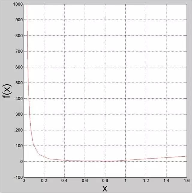 可得,函數的極值點為x=0.9553,對應極值為f(x)=2.5981。函數圖形如圖3所示。