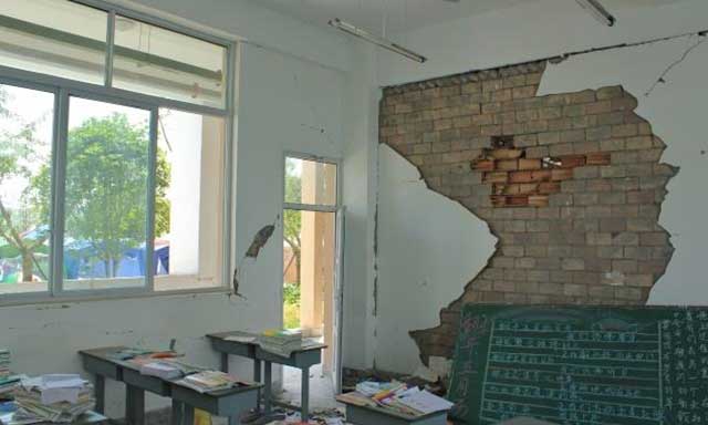 2)調(diào)查校舍現(xiàn)在與原始資料相符合的程度、施工質(zhì)量和維護(hù)狀況,發(fā)現(xiàn)相關(guān)的非抗震缺陷和是否存在局部損傷,并對(duì)現(xiàn)有校舍的缺陷損傷進(jìn)行專(zhuān)門(mén)分析,抗震加固時(shí)一并處理。