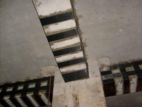 將抗拉強(qiáng)度極高的碳纖維用環(huán)氧樹(shù)脂預(yù)浸成為復(fù)合增強(qiáng)材料(單向連續(xù)纖維);用環(huán)氧樹(shù)脂粘結(jié)劑沿受拉方向或垂直于裂縫方向粘貼在要補(bǔ)強(qiáng)的結(jié)構(gòu)上,形成一個(gè)新的復(fù)合體,使增強(qiáng)粘貼材料與原有鋼筋混凝土共同受力增大結(jié)構(gòu)的抗裂或抗剪能力,提高結(jié)構(gòu)的強(qiáng)度、剛度、抗裂性和延伸性。