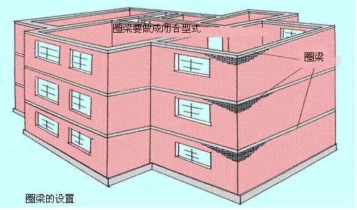 ⑷增設(shè)壁柱及圈梁。現(xiàn)澆混凝土附壁柱、圈梁以及內(nèi)墻拉桿形成整體,成為外包框架,即使不設(shè)柱僅設(shè)圈梁,也可大大提高其整體抗震性能。