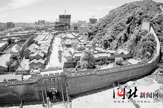 正在施工的明長(zhǎng)城大境門段城臺(tái)加固保護(hù)工程。張家口市在做好旅游資源開發(fā)的同時(shí),對(duì)大境門進(jìn)行了全面景區(qū)修復(fù)和綜合開發(fā),如今雄偉的大境門與仿古步行街相得益彰,成為該市文化旅游的一張重要名片。